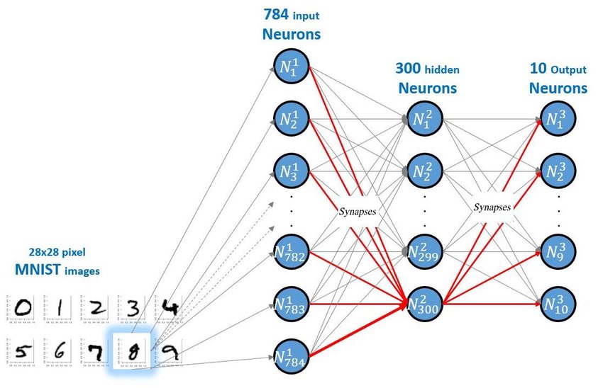 Here is an example of MLP with a single hidden layer for the MNIST dataset by LeCun et al. [1]: