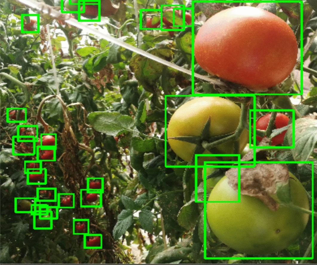 However, by feeding a very large number of images with and without tomatoes along with labels that give the number of tomatoes for each image to a neural network, we can train it to recognize tomatoes in images that it has never seen.